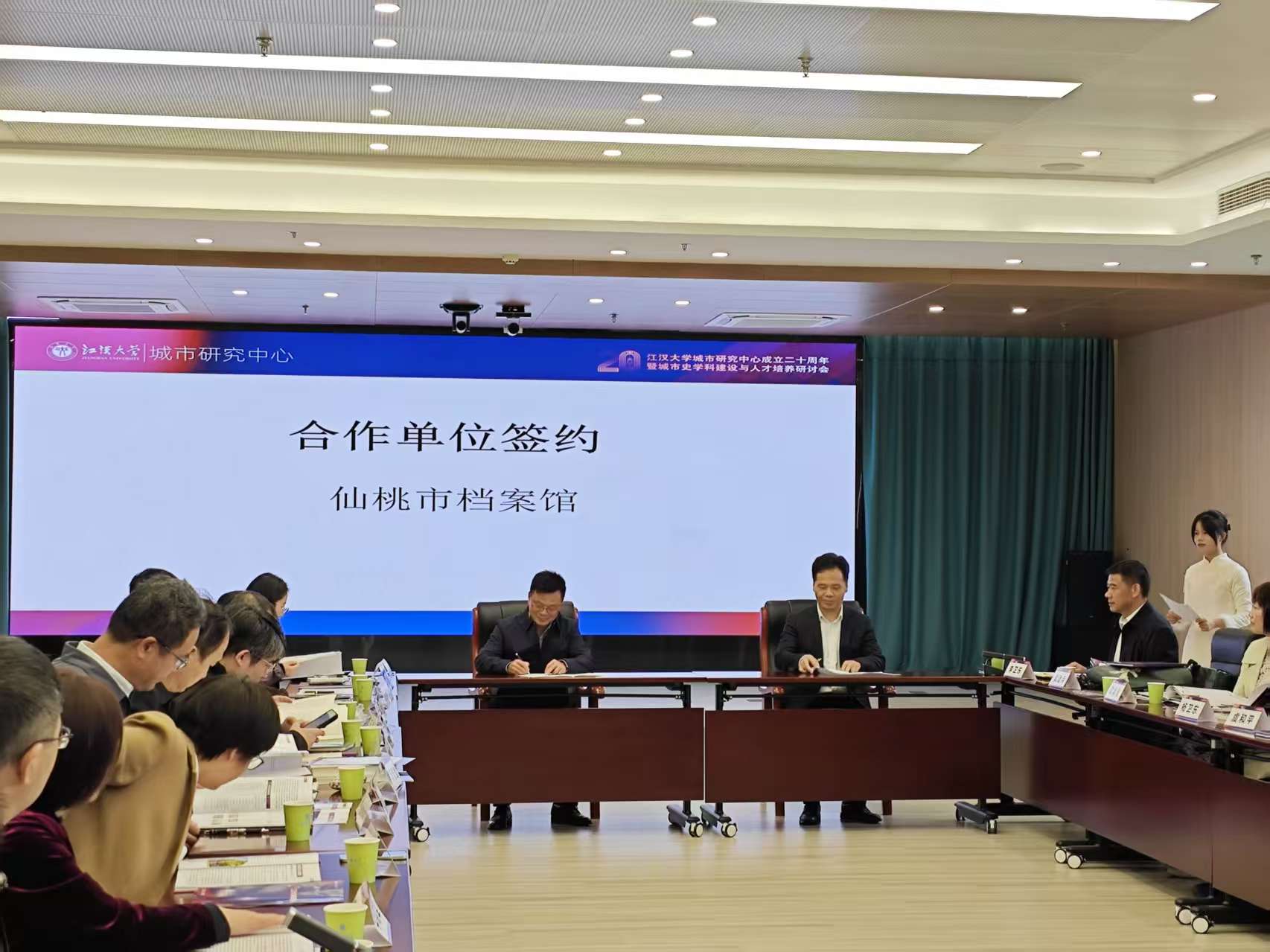 江汉大学城市研究中心2005年成立以来,基于“立足武汉、面向湖北、辐射全国”的人才培养目标定位,专注城市地方学、城市法制史、区域城市史、城市治理、城市文化与社会等领域的研究。仙桃作为武汉市后花园,城市文化底蕴深厚,历史资源、红色资源丰富。此次签署合作协议,为大学生研究在中国革命与建设的大背景下,深度挖掘仙桃红色的特色与历史价值,提供红色研学旅行资源开发与利用研究平台。合作开发将以红色文化为主题开展研学,并建立“仙桃红色+研学课程体系”,助力仙桃大党史建设,打造仙桃红色文化品牌,深化城市文化传承在历史发展进程中的地位与作用。