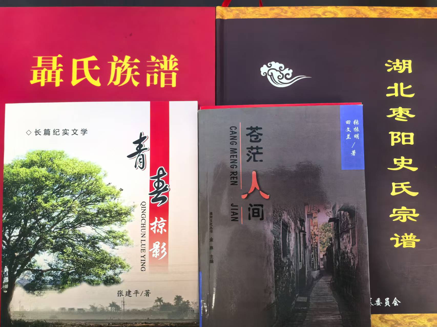 此次征集接受的文献资料兼具史料价值与文化意义。由聂道平主编的《枣阳聂氏族谱》与史振龙主编的《湖北史氏族谱》系统记录了相关家族在枣阳及周边地区的迁徙脉络与发展历程,为研究本地宗族文化与社会变迁提供了珍贵素材;张建平所著的《青春掠影》以个人视角记录时代变迁,真实再现了多个历史阶段的社会风貌,是一部鲜活的民间纪实作品;其珍藏的父母合著的《苍茫人间》,则深情记述了张振明、田文兰两位革命老人的奋斗岁月,展现了老一辈对党和人民的忠诚和情怀。这批资料的接收进馆,不仅丰富了我馆家族史与个人记忆类档案馆藏,也使枣阳的社会记忆体系更加完整。