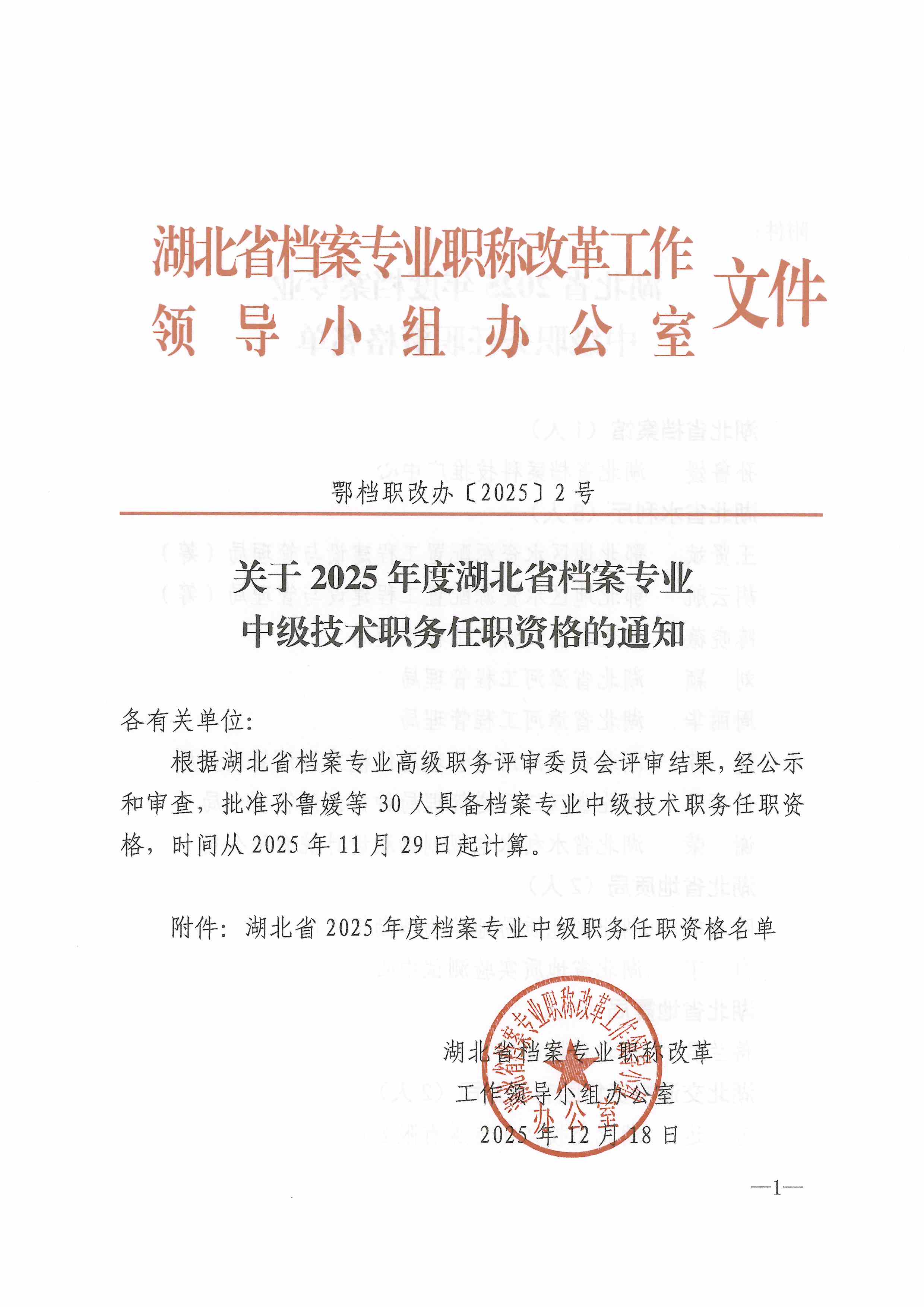 关于2025年度湖北省档案专业中级技术职务任职资格的通知