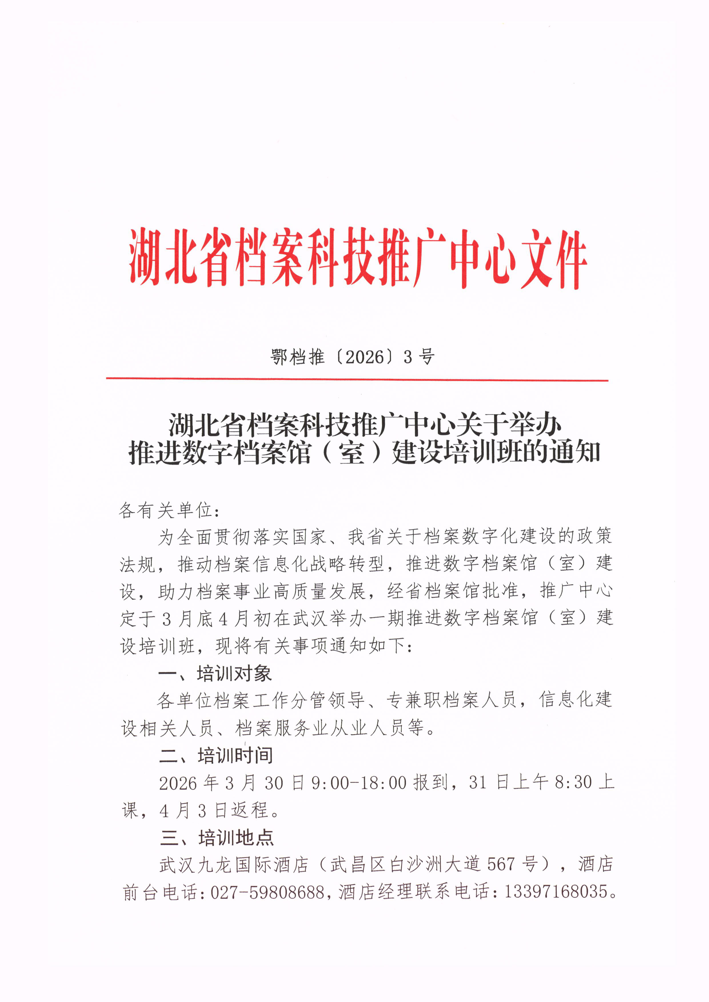 湖北省档案科技推广中心关于举办推进数字档案馆(室)建设培训班的通知
