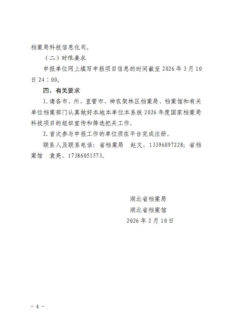 湖北省档案局 湖北省档案馆关于组织申报2026年度国家档案局科技项目的通知