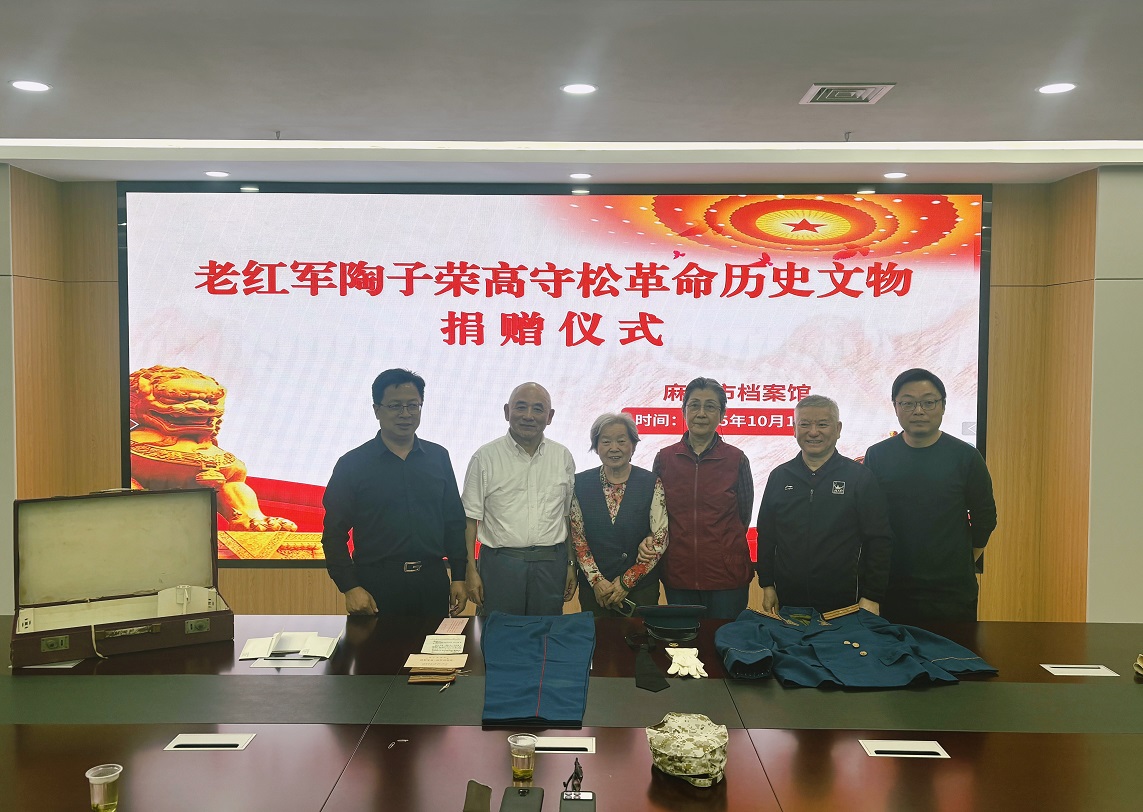 10月16日下午,老红军陶子荣、高守松革命历史文物捐赠仪式在麻城市档案馆隆重举行。馆长邓焕发代表馆方接受捐赠,并向捐赠人颁发收藏证书。