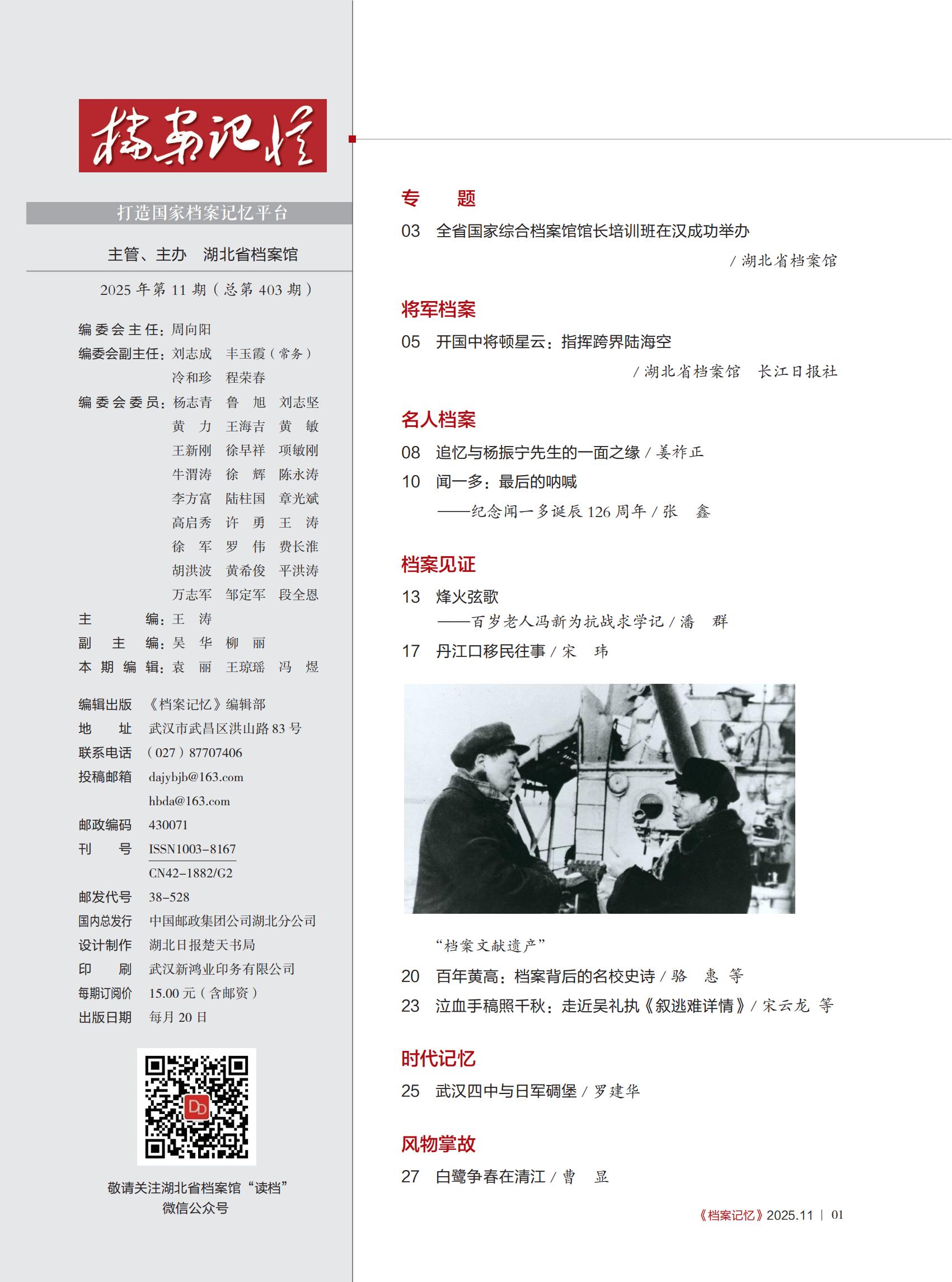 《档案记忆》杂志是湖北省档案馆主管、主办的省优秀期刊,创刊于 1986 年,是全省唯一具有公开刊号的档案专业类杂志,也是湖北省档案馆“一库一展一讲一刊”红色档案品牌之一,具有广泛的社会影响力和工作指导性。 投稿及订阅咨询:027-87707406。 投稿邮箱:dajybjb@163.com;hbda@163.com。