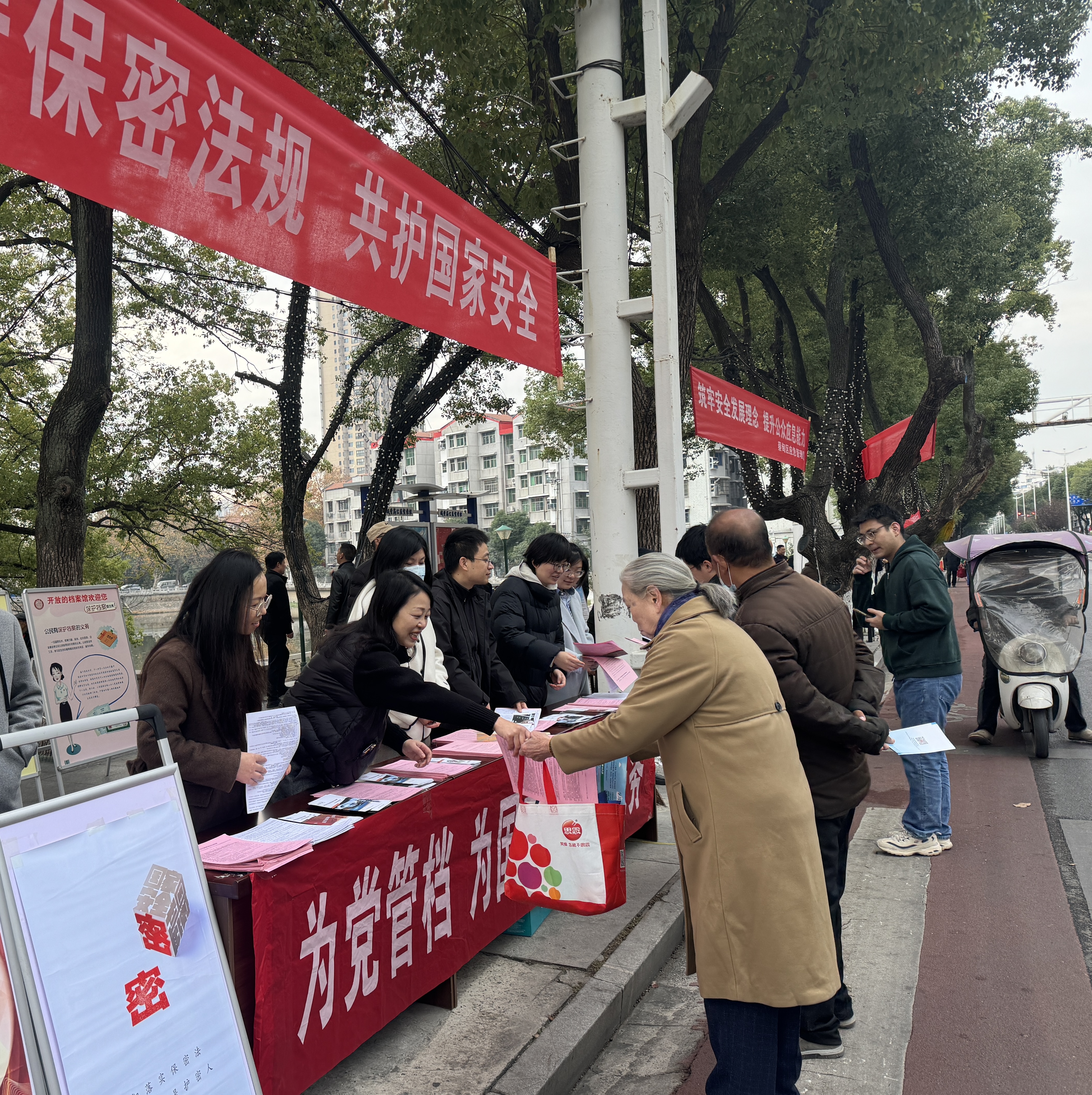 为进一步普及档案法律法规知识,让“档案保护”“依法用档”的理念走进寻常百姓家,活动现场,档案馆的工作人员在咨询台对群众存在的各类档案相关疑问,逐条细致解答,用通俗的语言把专业的档案知识“翻译”成群众听得懂的家常话,从档案的法律属性到日常保护技巧,从依法利用档案的途径到违规处理档案的后果,一一讲解到位,让大家明白“档案离生活不远,法治护档案更牢”。同时,工作人员还向过往群众发放了精心印制的档案法治宣传单,单页上不仅梳理了《档案法》中与群众生活密切相关的重点内容,还附上了蔡甸区档案馆的查档须知,方便市民后续有档案需求时随时咨询。此次活动接地气、有温度,与群众近距离互动,是蔡甸区档案馆落实“宪法宣传周”要求、践行“我为群众办实事”的具体举措。通过“面对面咨询+手把手递资料”的形式,既打破了档案工作的“神秘感”,又让档案法治知识真正走进群众心里,深刻诠释了档案工作为民服务的精神实质,有效促进了社会档案意识提升。