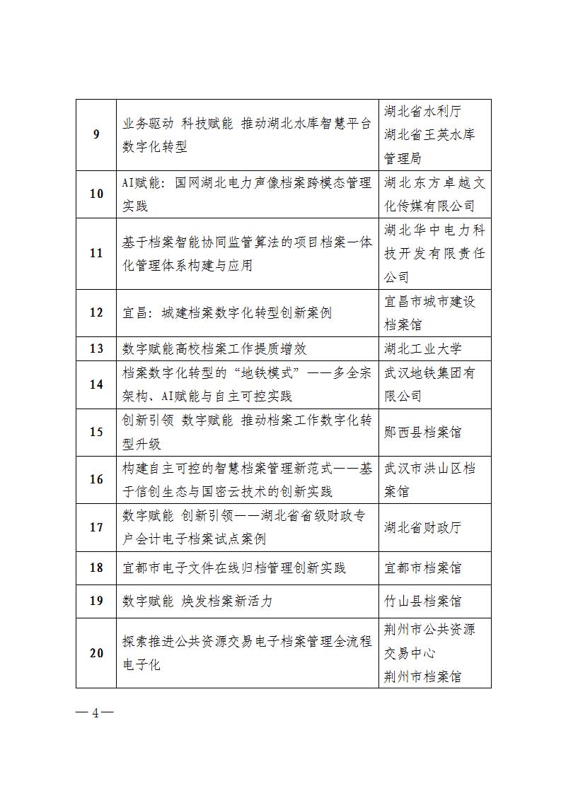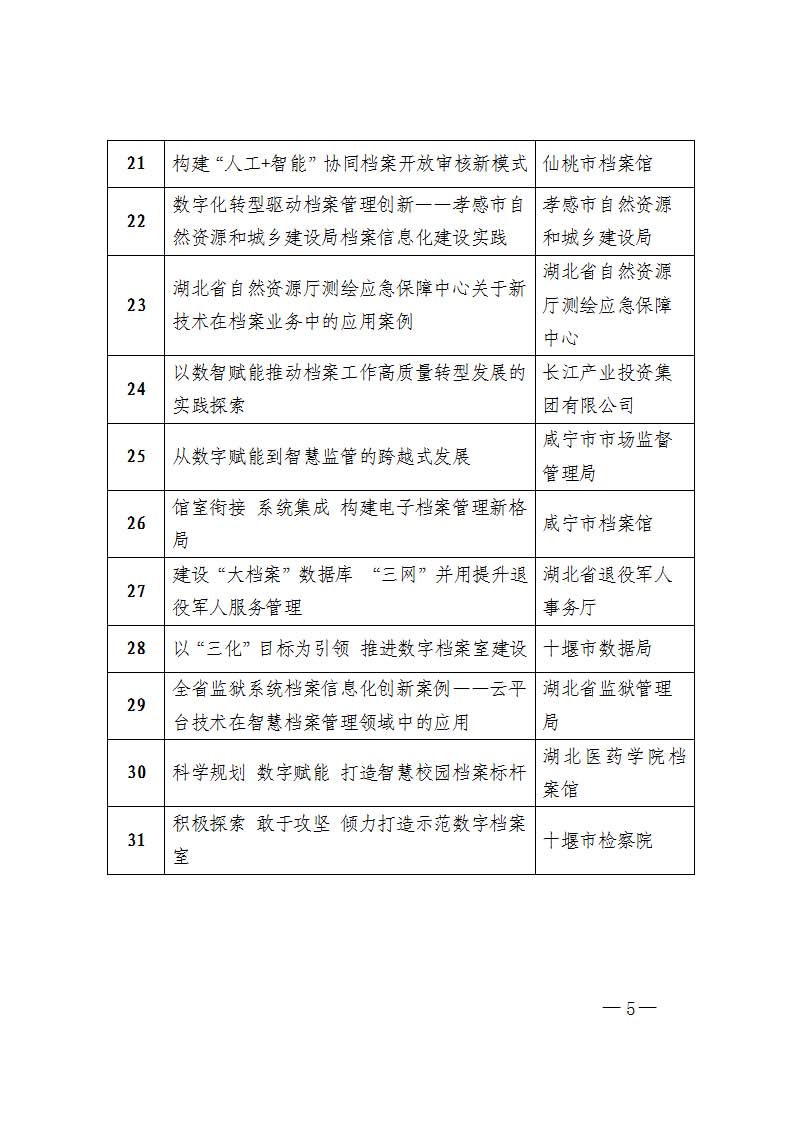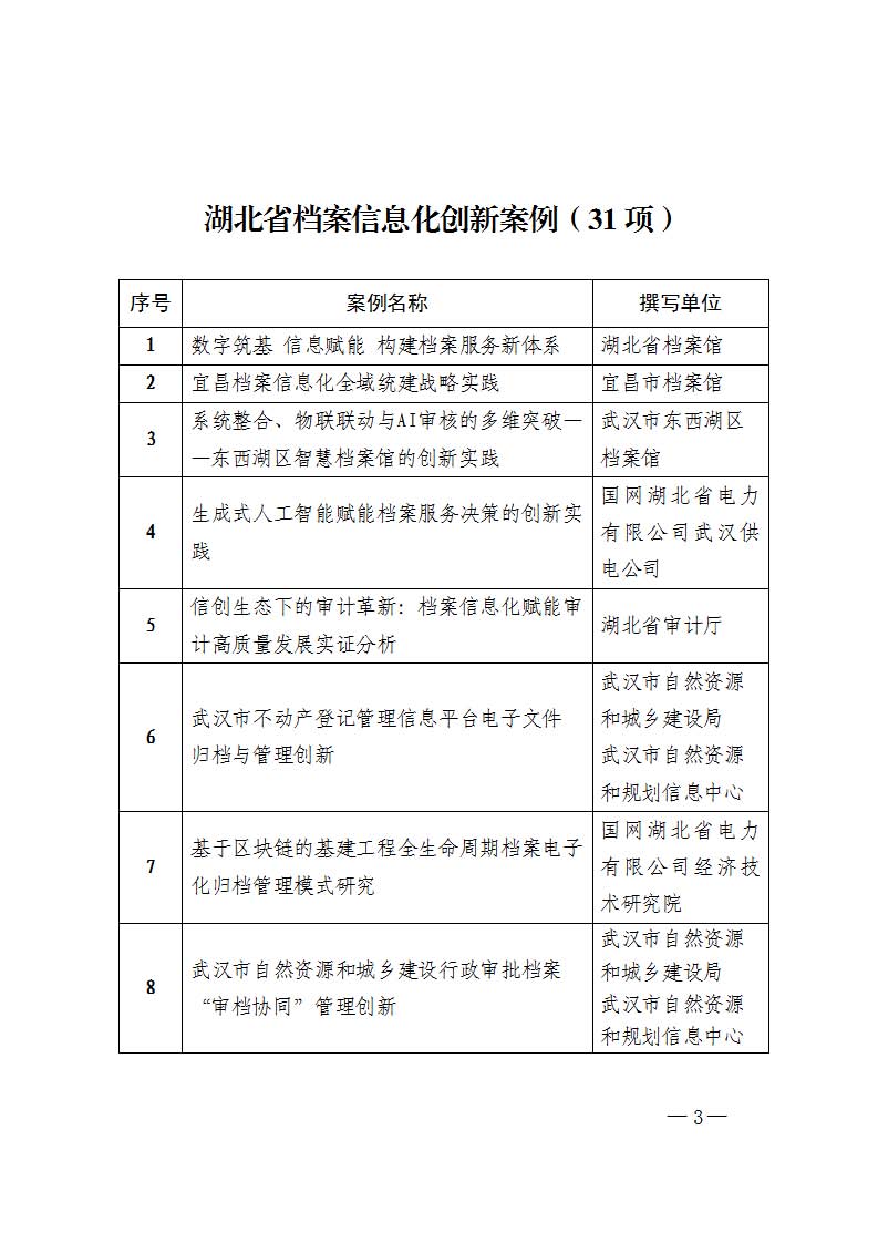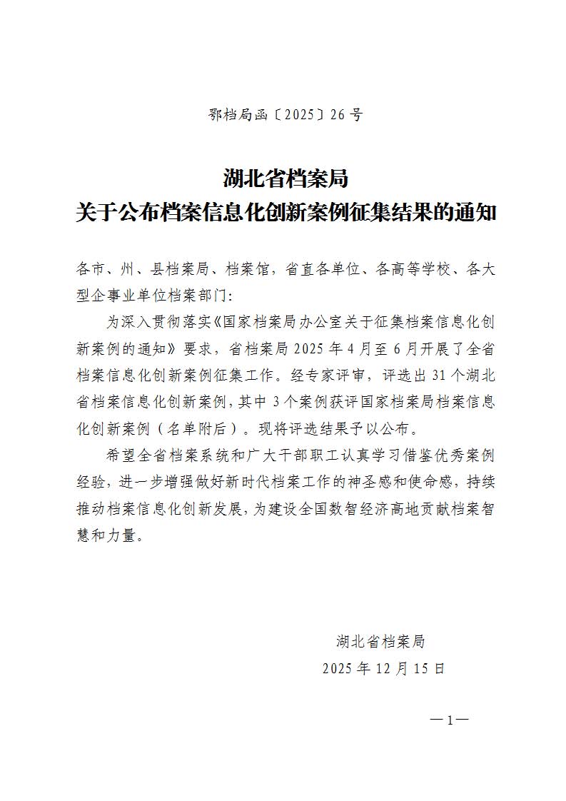 湖北省档案局关于公布档案信息化创新案例征集结果的通知