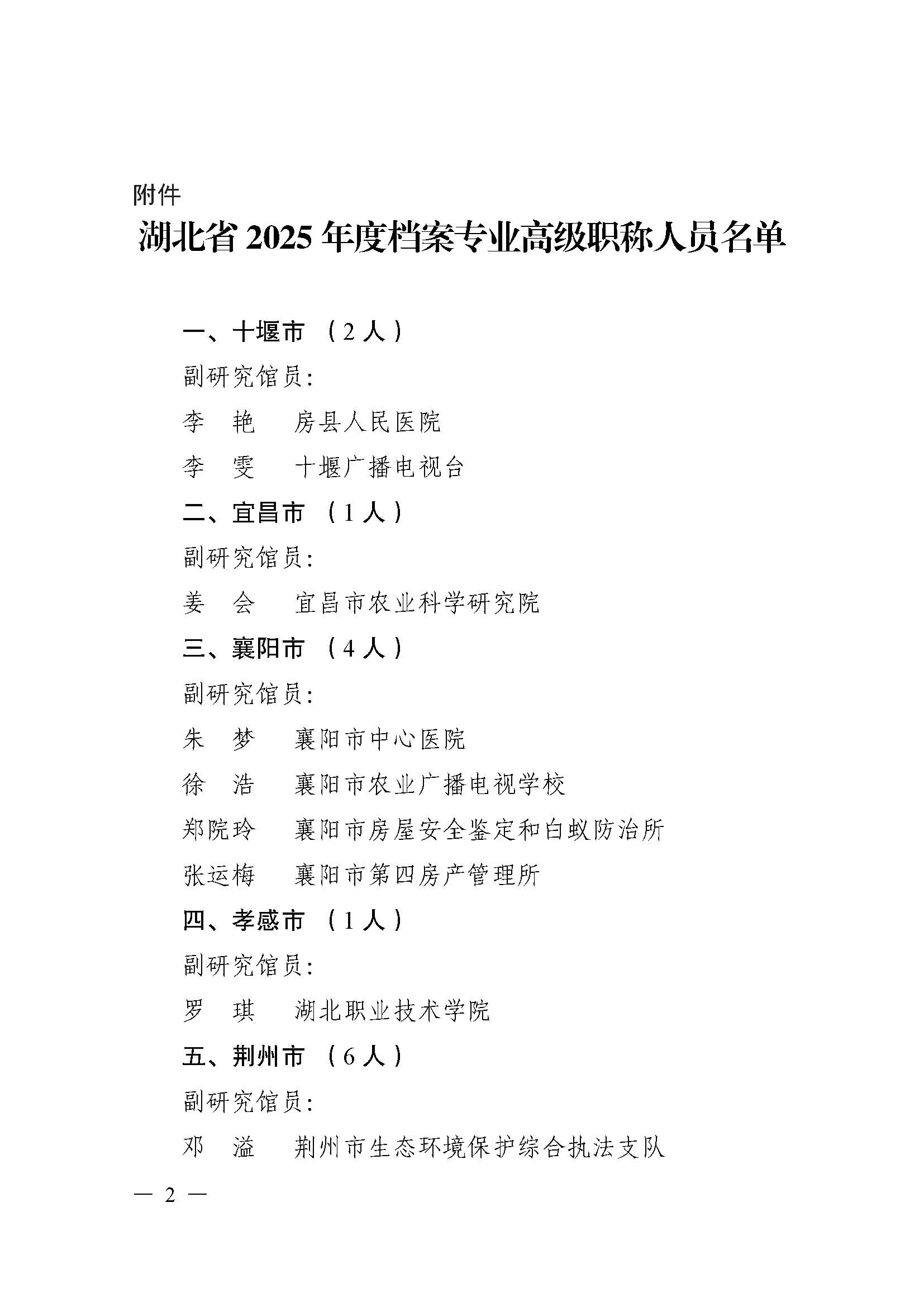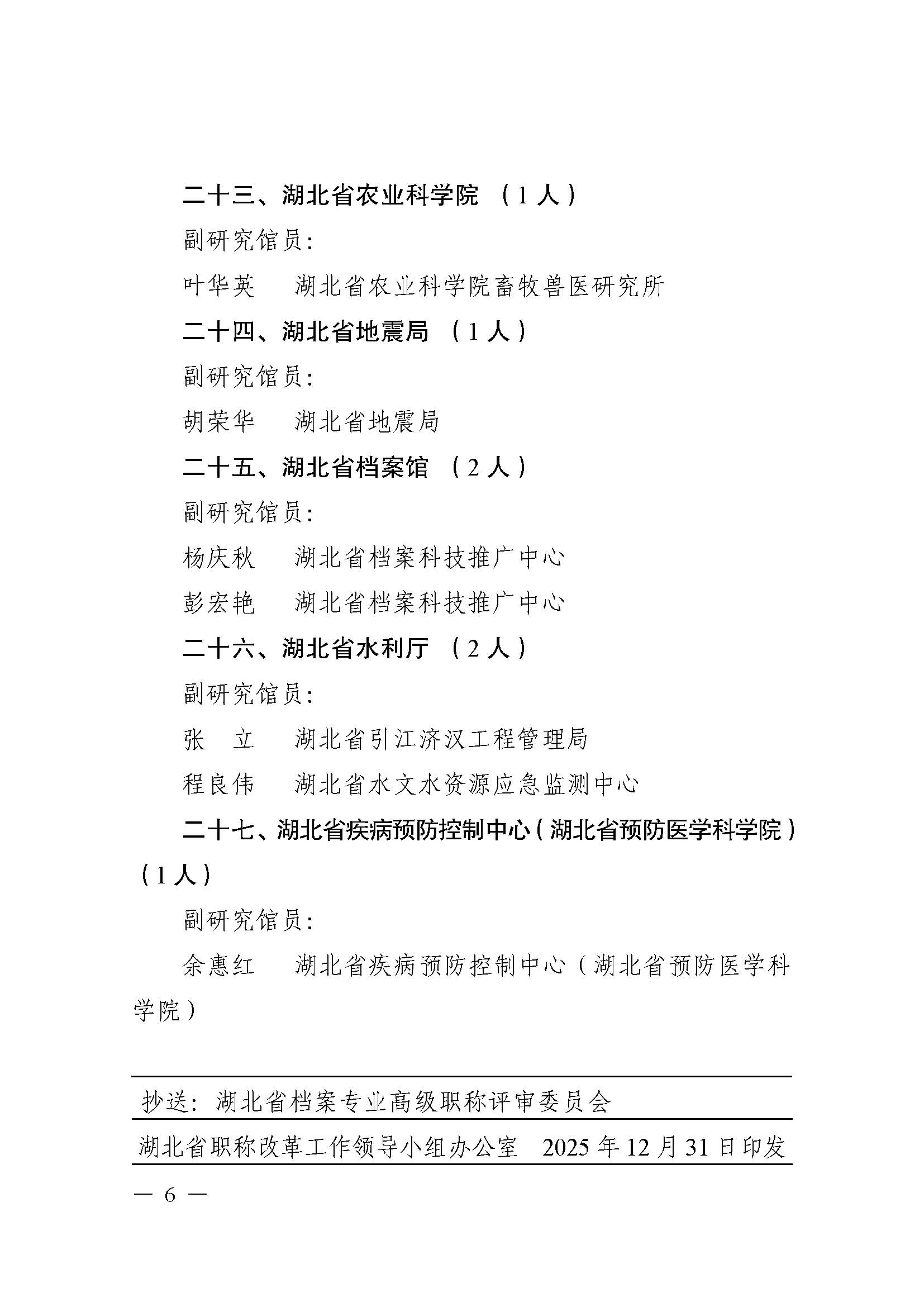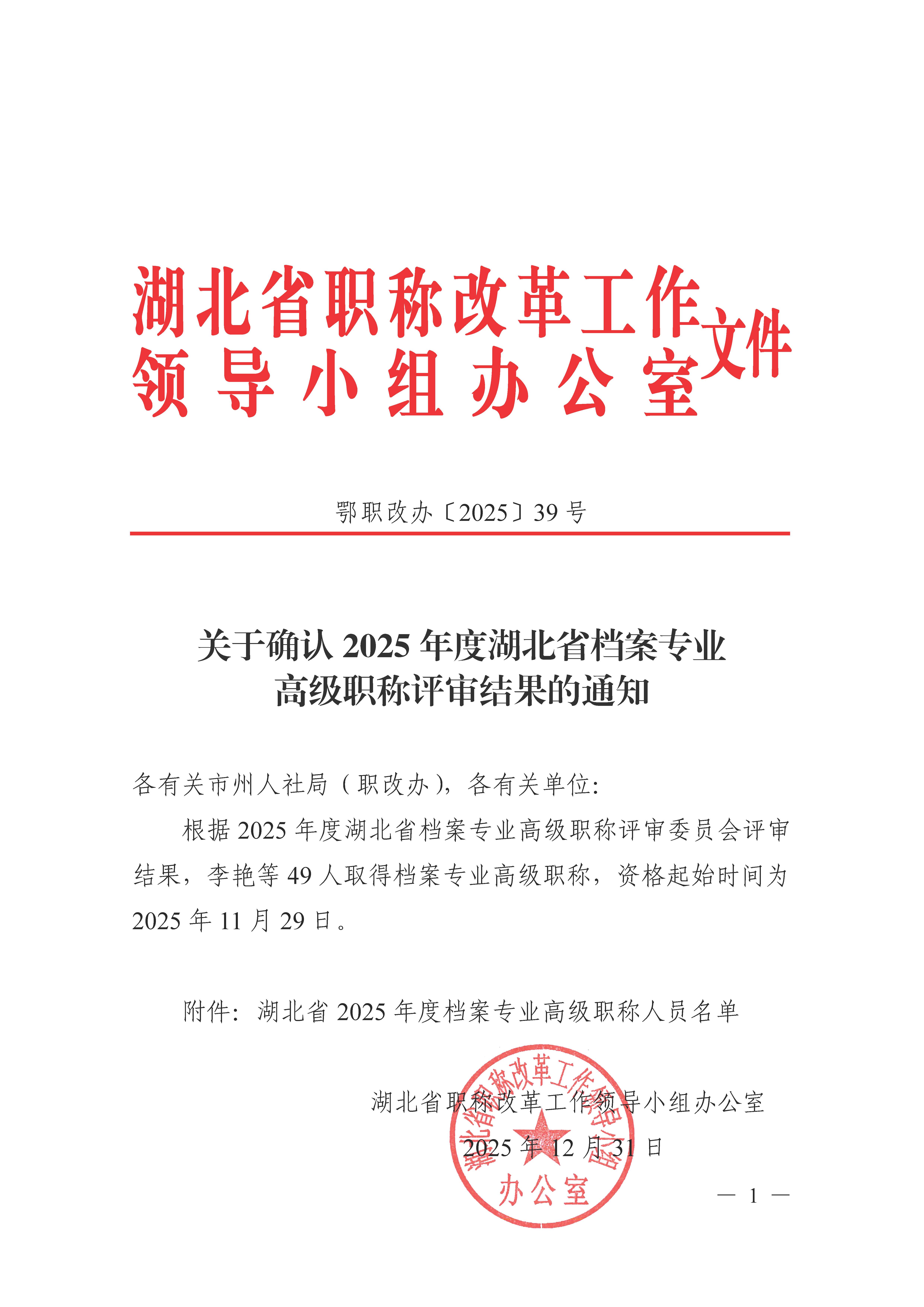 关于确认2025 年度湖北省档案专业高级职称评审结果的通知