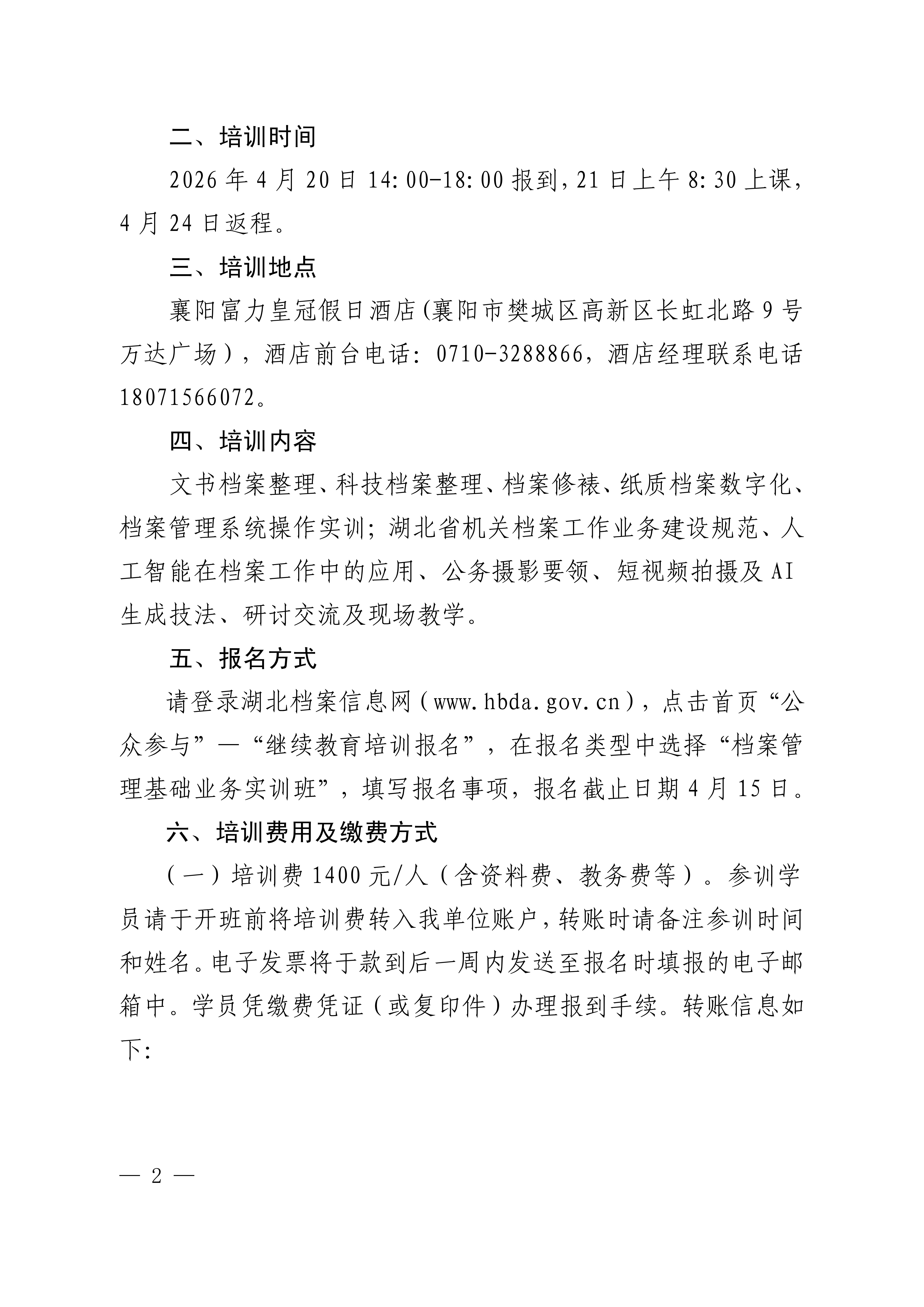 湖北省档案科技推广中心关于举办档案管理基础业务实训班的通知.pdf