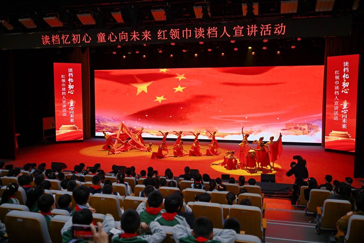 档案存史资政育人,是教育的资源库、青少年的精神粮仓。宣讲环节,9位“红领巾读档人”依次登台,围绕八七会议、马灯精神、曾侯乙编钟、革命英雄事迹等主题展开5分钟沉浸式讲述,厚重的档案通过孩子们的生动讲述变身为一个个鲜活的故事、一段段珍贵的记忆。搭配南湖二小的学生们带来的舞蹈《红》、长春街小学的学生们倾情演绎原创话剧《抗战奇花》,引来现场阵阵掌声。