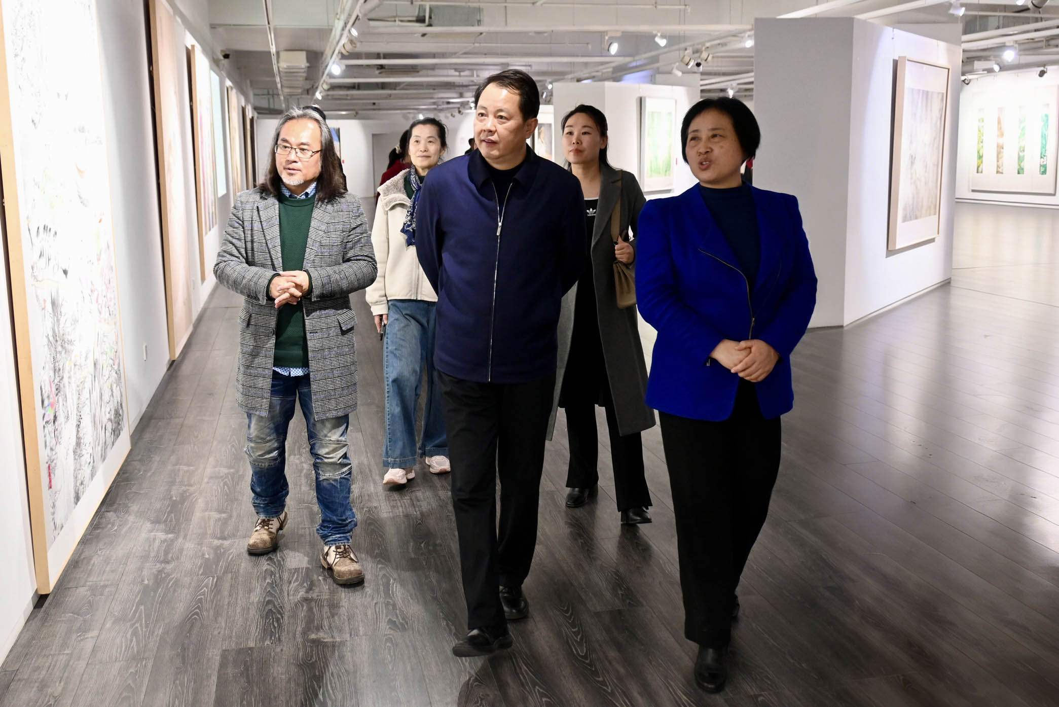 周向阳(中)参观第十二届中国工笔画作品展(湖北巡展)
