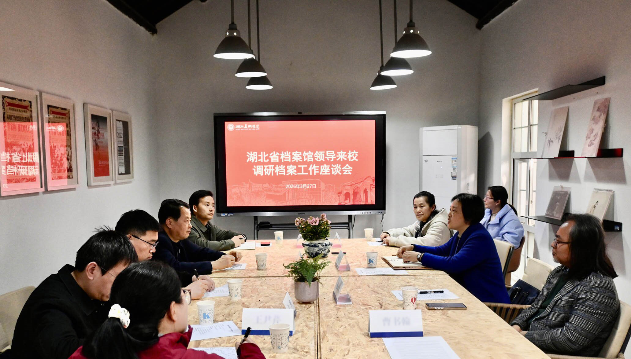 3月27日,湖北省档案馆馆长周向阳一行赴湖北美术学院调研交流,湖北美术学院党委书记鲍清芬陪同。