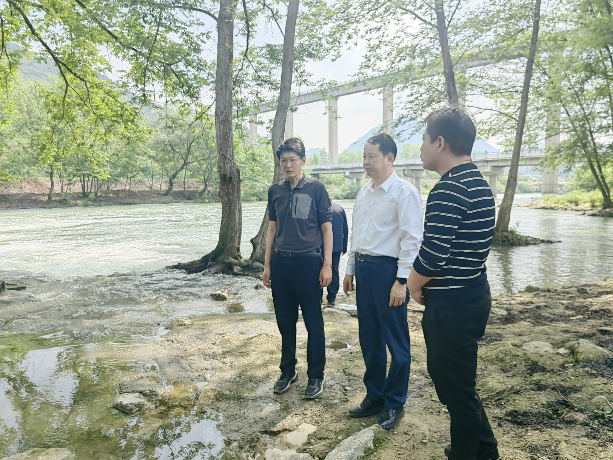 周向阳(中)察看高堤河湿地露营基地项目