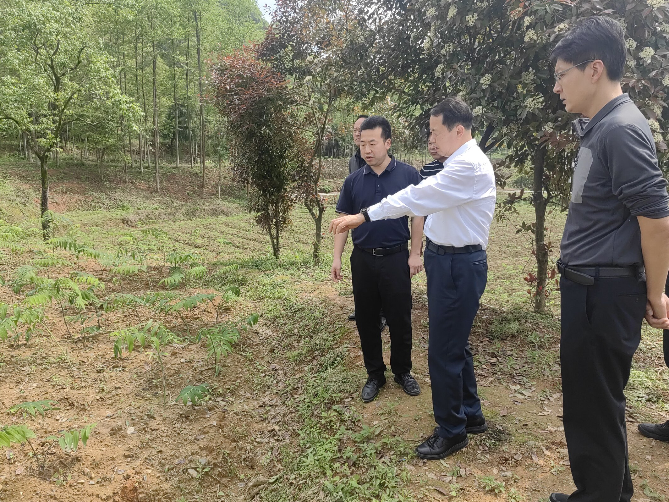 周向阳(中)察看独石村黄精种植基地