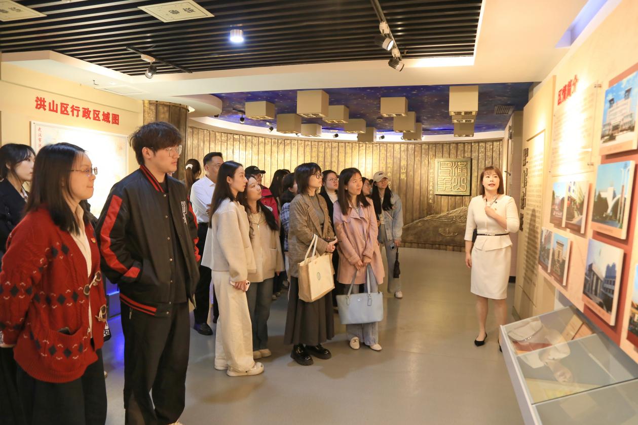 当天,师生们参观了“洪山印象”主题展区,通过珍贵档案、历史照片、实物展品等,沉浸式了解洪山的发展变迁与建设成就。在档案库房,大家直观学习了档案管理、保存、利用等专业流程,将课本知识与实际操作紧密结合。
